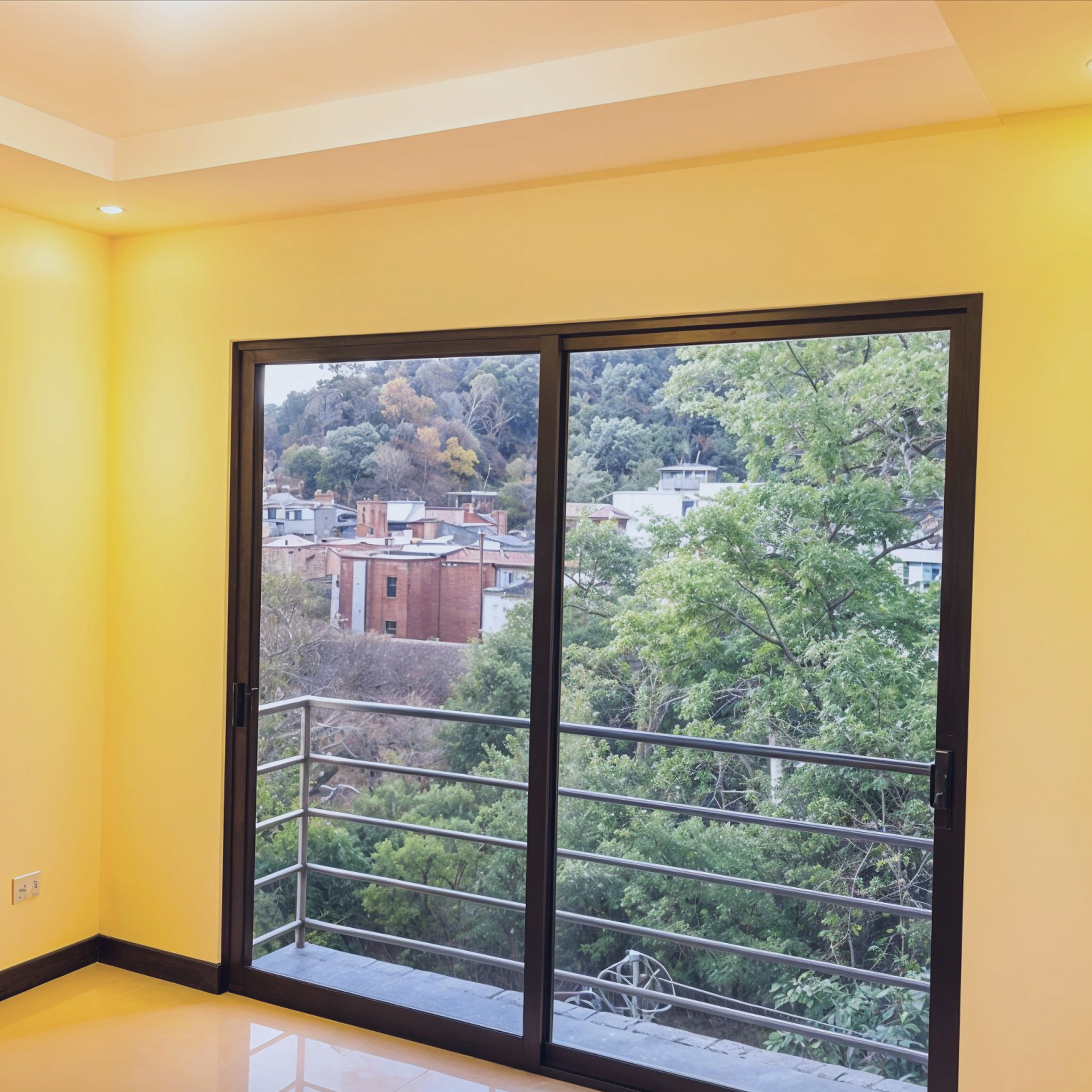 - Puertas y ventanería de vidrio sistema Akari móvil-móvil color bronce, con agarraderas de seguridad de lujo.